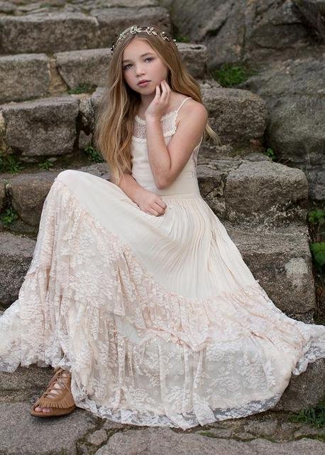 Summer Girls Lace Cotton Bohemia Long Dresses Baby Kids Flow